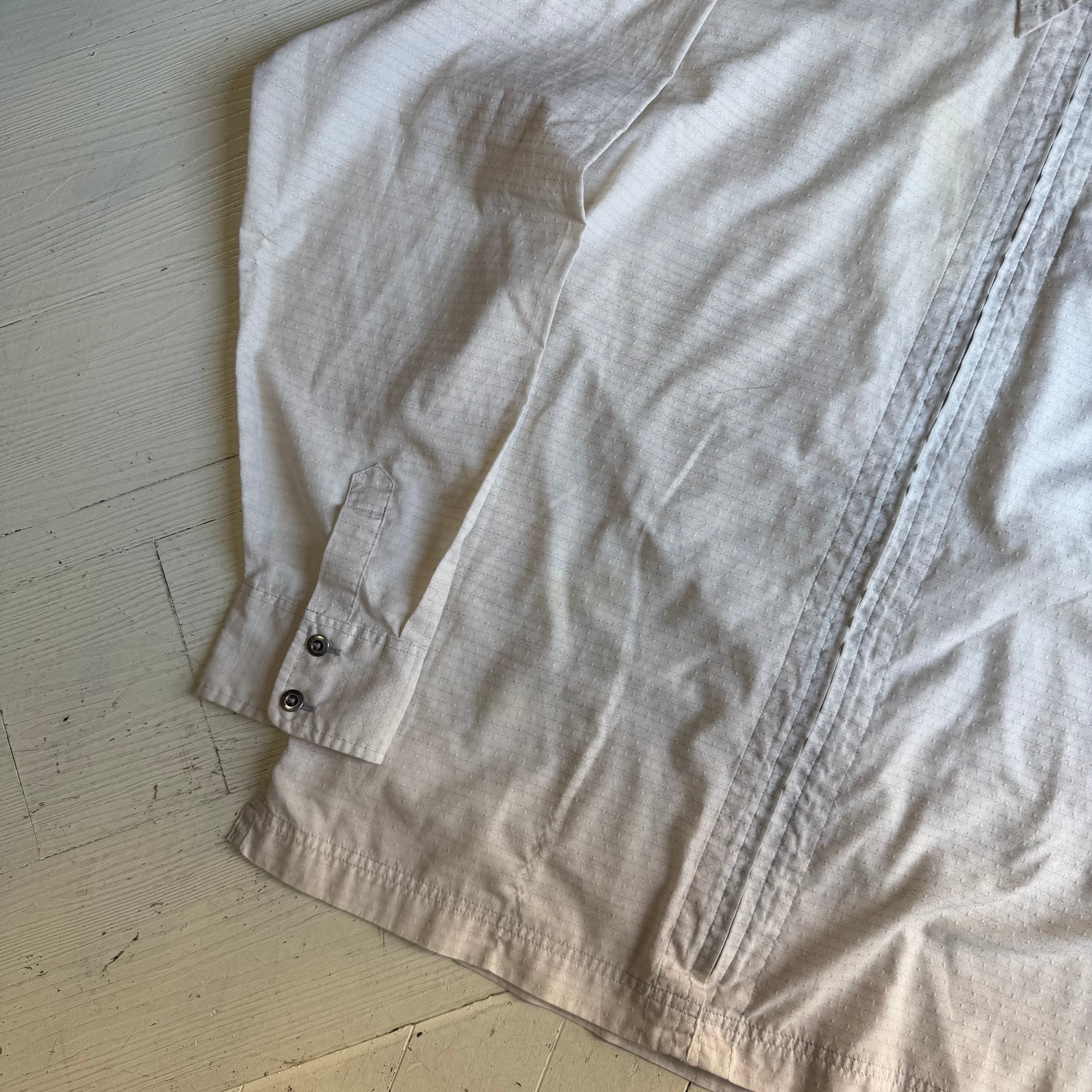 珍しいホワイトベースのジップアップシャツです。