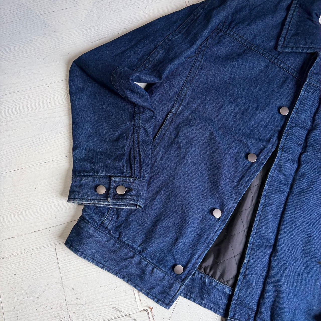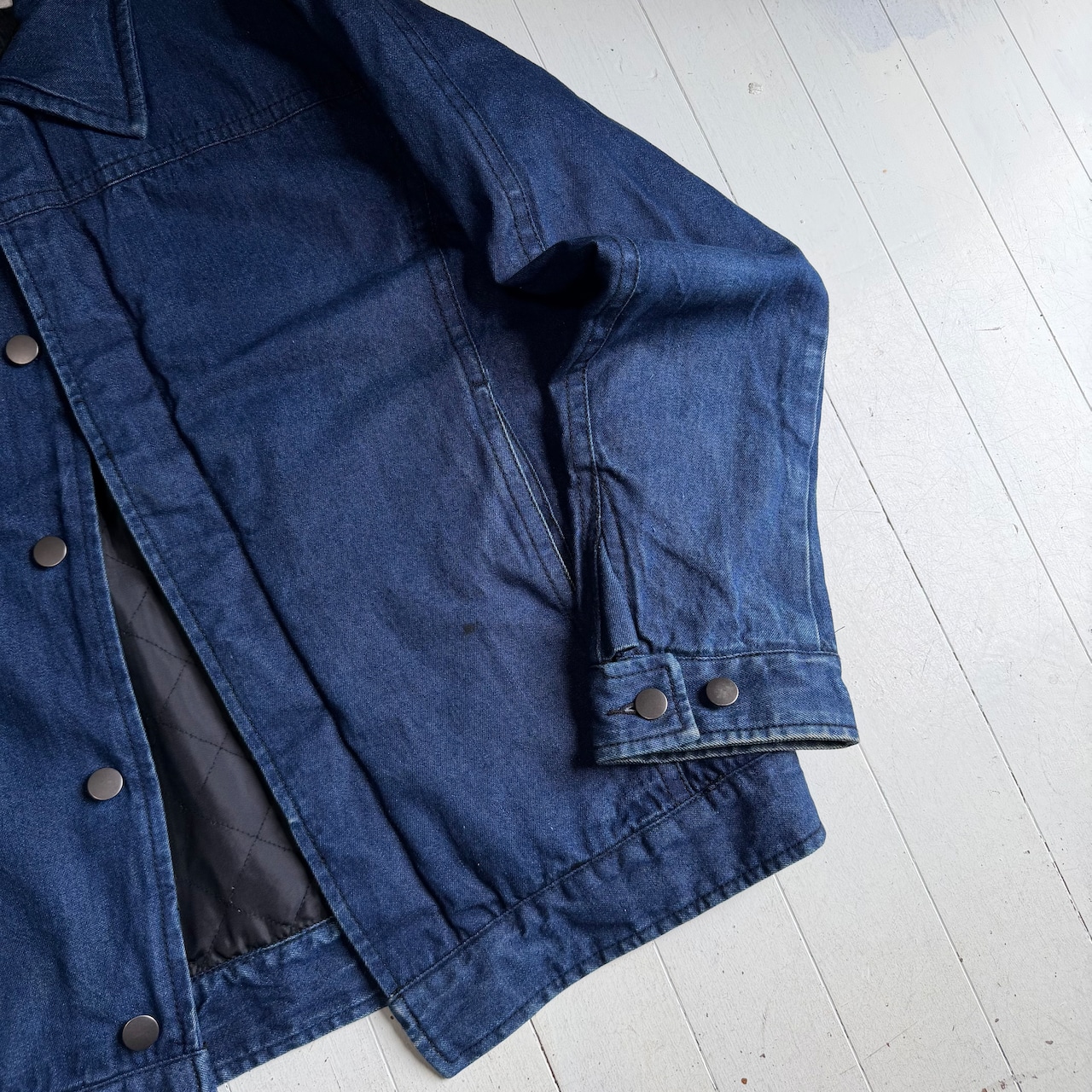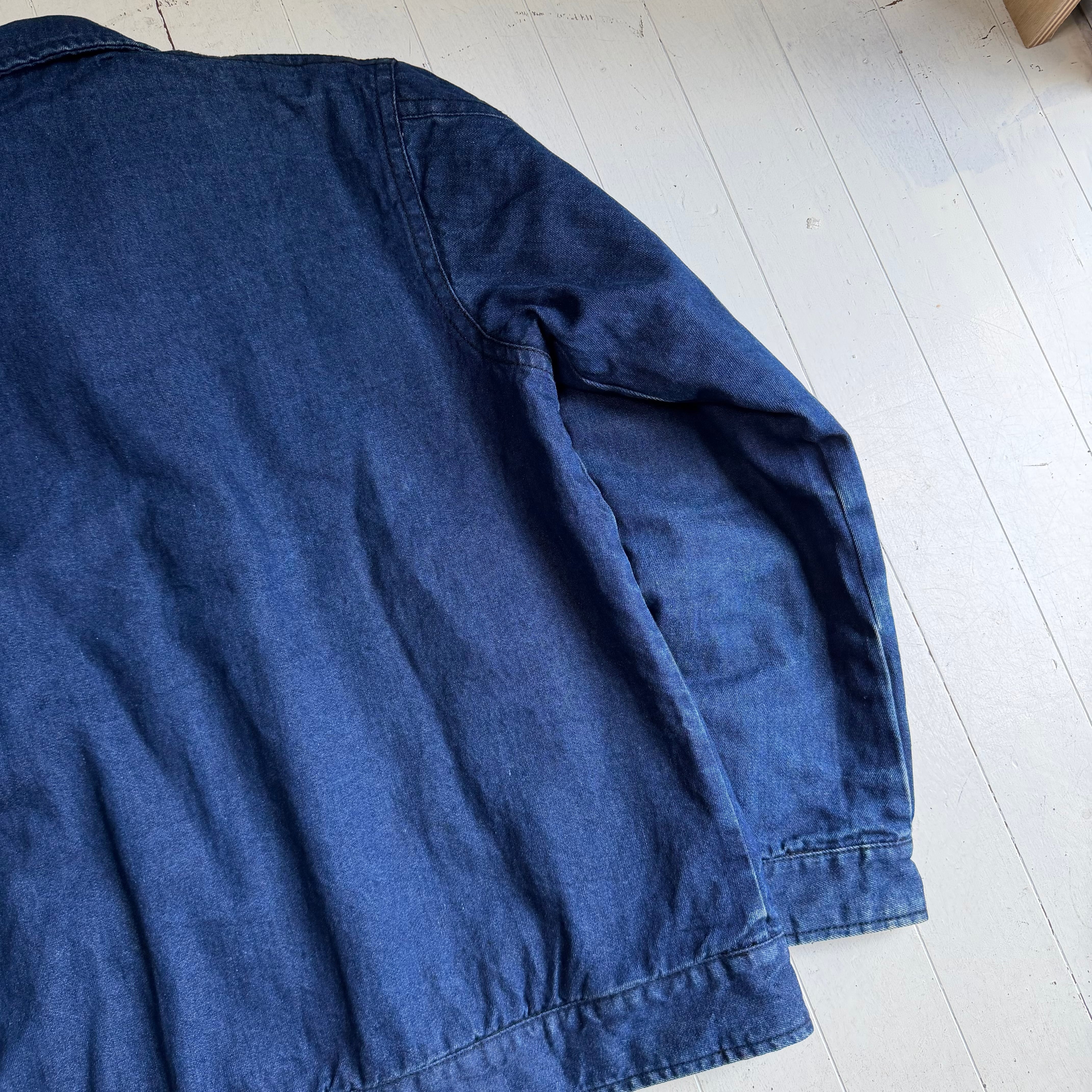 デニム素材で中綿入りの珍しいデザインのジャケットです。